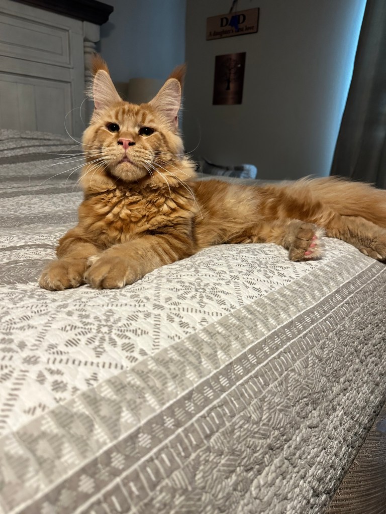 Red Tabby Polydactyl who owns the house and lets everyone know it. Friendly boy and exudes confidence.